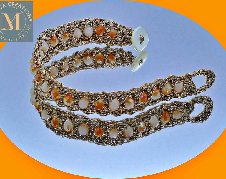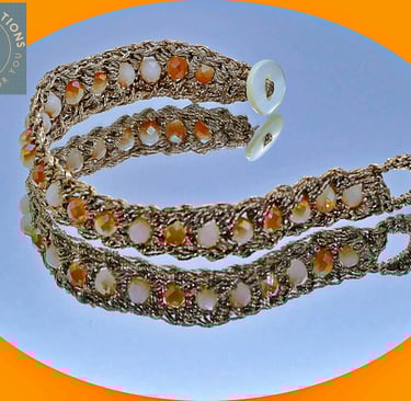 Close-up of a handmade colorful bracelet with intricate beadwork.